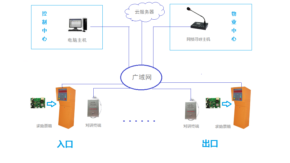 我司IP廣播對講系統(tǒng), 可以在控制中心安裝IP尋呼話筒主機(jī),在停車場輸入口安裝對講求助分機(jī),或者是在緊急求助箱安裝IP對講模塊。
