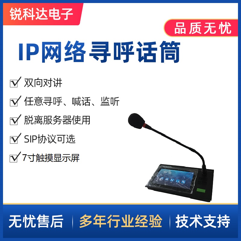 本網(wǎng)絡(luò)尋呼話(huà)筒可以通過(guò)麥克風(fēng)或者本地線(xiàn)路輸入對(duì)終端進(jìn)行一對(duì)一單播、一對(duì)多組播和全區(qū)廣播,也可以和系統(tǒng)中支持對(duì)講的終端進(jìn)行雙向的通話(huà)。本網(wǎng)絡(luò)尋呼話(huà)筒配置7英寸觸摸屏,可以進(jìn)行系統(tǒng)設(shè)置,也可以將終端的IP錄入到地址簿中,可以通過(guò)地址簿選擇操作終端。