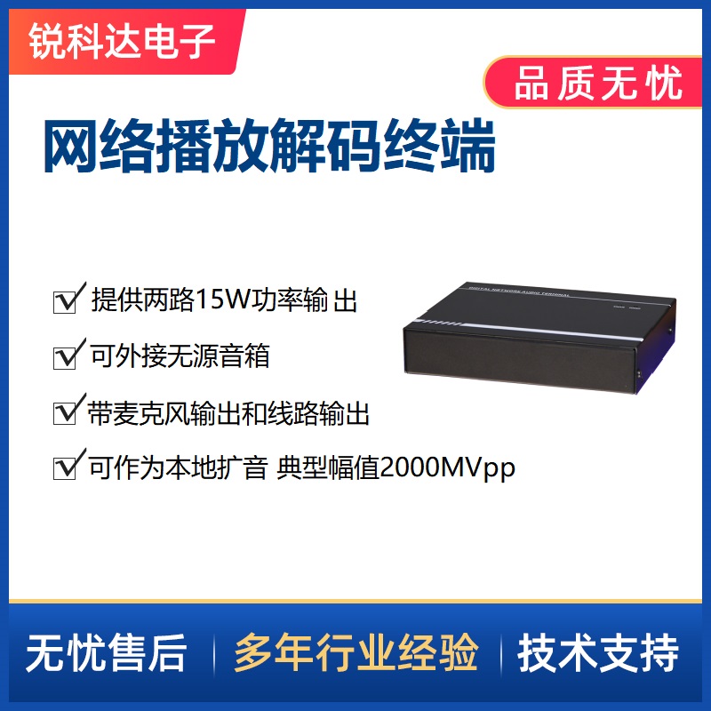 SV-7003是一款I(lǐng)P網(wǎng)絡(luò)廣播終端,具有10/100M以太網(wǎng)接口,其接收網(wǎng)絡(luò)的音頻數(shù)據(jù)或外部音頻輸入后,提供一路立體聲的音頻輸出。